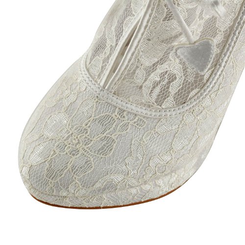 Minitoo TH13132 Womens Stiletto High Heel Round Toe White Lace Evening Party Bridal Wedding Lace Up Ankle Boots Size 4