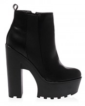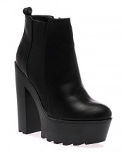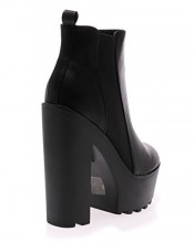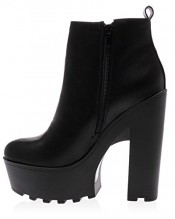 My1stwish Women’s Cleated Sole Platform High Block Heel Boots Black PU Size 6