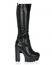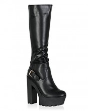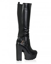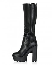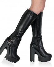 My1stwish Women’s High Block Heel Zip Up Platform Elastic Boots Shoes Black Size 7