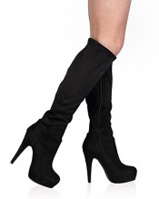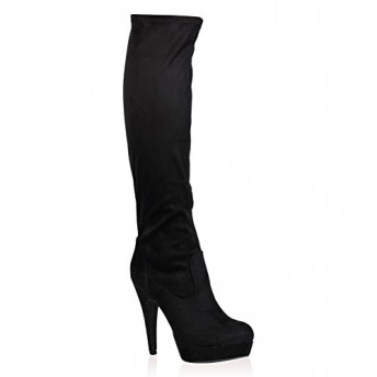 My1stwish Women’s Platform Knee High Stiletto Heel Boots Black Suede Size 4