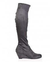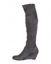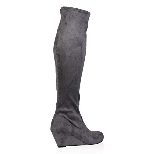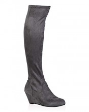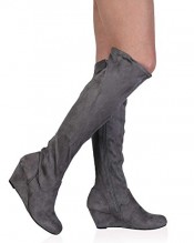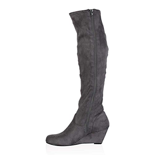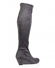 My1stwish Women’s Zip Up Knee High Wedge Heel Boots Grey Suede Size 6