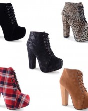 These gorgeous lace up ankle boots feature a high block heel, a concealed platform and come in a choice of five different colours. Great for both day and evening wear!