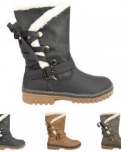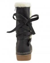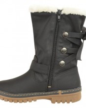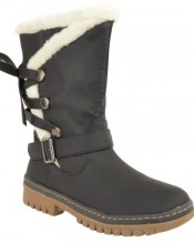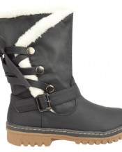 NEW LADIES WOMENS LOW HEEL FLAT FUR LINED GRIP SOLE WINTER ANKLE CALF BOOTS SIZE (UK 6 / EU 39 / US 8, Black Faux Leather)
