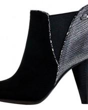 Black faux suede upper with metallic textured heel panel