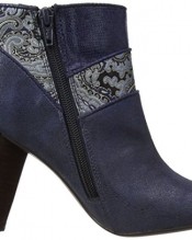 This lovely Ruby Shoo Cher blue high heel ankle boot is simply stunning. With its’ metallic synthetic upper and embroidered detailing around the top, this beautiful boot will have you turning heads in no time!