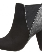 This lovely Ruby Shoo Louise black high heel ankle boot is simply stunning. With its’ black suede, black/gold metallic synthetic upper and embroidered detailing around the top, this beautiful boot will have you turning heads in no time!
