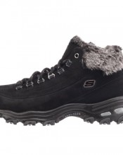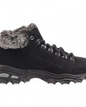 Sporty and versatile good looks, comfort and added warmth go into the SKECHERS D’Lites – Swanky shoe. Smooth leather upper in a high top casual lace up sneaker with stitching and overlay accents. Faux fur trim.