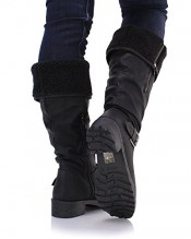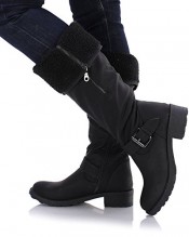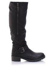 Sole Affair BACKWOODS Womens Ladies Chunky Low Heel Knee High Fur Lined Flat Biker Riding Calf Boots Size UK 3, EU 36 Black