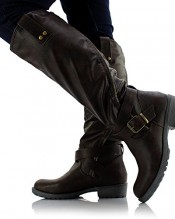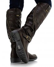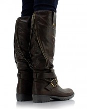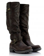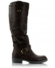 Sole Affair HUSTLE Ladies Womens Leather Style Knee High Flat Low Chunky Heel Biker Riding Boots Size UK 7, EU 40 Brown