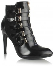Sole Affair WILD Womens Ladies Leather Style High Stiletto Heel Pointed Toe Ankle Calf Zip Boots Size UK 4, EU 37 Black