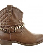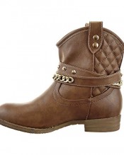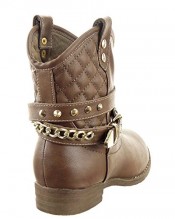 Sopily – Women’s Fashion Shoes Ankle boots – Booty – ankle-high – Western – Santiags – Cowboy – Low boots – Quilted – Chains – studded Heel Block Heel 2.5 CM – Brown FRF-A089 T 40 – UK 7