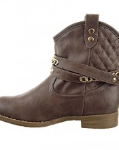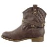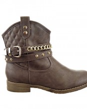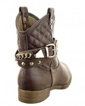 Sopily – Women’s Fashion Shoes Ankle boots – Booty – ankle-high – Western – Santiags – Cowboy – Low boots – Quilted – Chains – studded Heel Block Heel 2.5 CM – Khaki FRF-A089 T 38 – UK 5