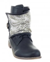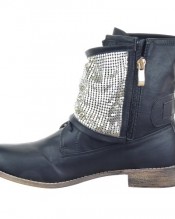 Women’s Fashion Shoes – Ankle boots – Booty Sopily authentic and new. Fashion Shoes in Color Black – Design : metallic. Outer Material : synthetic leather premium – Insole : textile – Heel : Block Heel – round-toe – Shaft Height : high-top – Closure Type : Lace-Up.