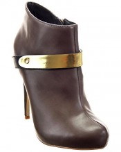 Sopily – Women’s Fashion Shoes Ankle boots – Booty Low Boots – ankle-high – Stiletto – Low boots – Buckle – metallic 12 CM – Brown WL-628-83 T 39 – UK 6