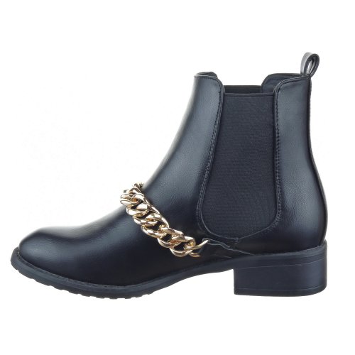 Women’s Fashion Shoes – Ankle boots – Booty – Low Boots Sopily authentic and new. Fashion Shoes in Color Black – Design : Chains. Outer Material : synthetic leather premium – Insole : synthetic – Sole Material : synthetic – Heel : Block Heel – round-toe – Shaft Height : high-top – Closure Type : Slip On.