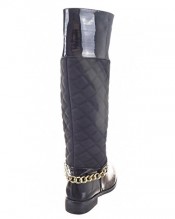 Sopily – Women’s Fashion Shoes Boots – Knee-High – Wellignton – Rain Boots – Cavalier – Quilted – Buckle – Chains Heel Block Heel 3 CM – Black FRF-66-5 T 41 – UK 8
