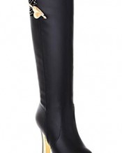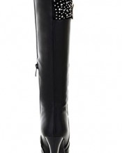 Three’s Ladies Knee High Boots Zip Up Platform High Heel Diamante Party High Leg Boots (4, black)