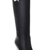 Three’s Ladies Knee High Boots Zip Up Platform High Heel Diamante Party High Leg Boots (4, black)