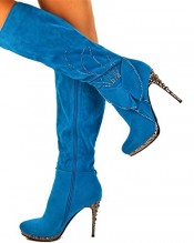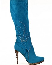 Turquoise Blue Rhinestone Embellished Butterfly Stiletto Heel Knee High Boots
