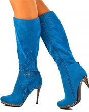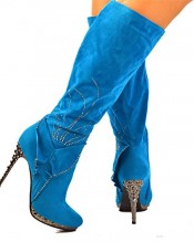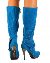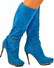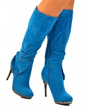 Breathtaking colour and creative detailing that would fit perfectly on the feet of a forest fairy. These amazing turquoise coloured, faux suede boots have a butterfly shaped decoration on the outside. The butterfly is decorated with tiny, shimmering rhinestones. Not to mention the excuisite heel and platform design. A mix of beautiful colours and timeless decorations have created the perfect statement boots.