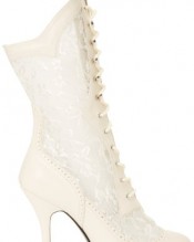 High quality fancy dress footwear. Would suit any Victorian/Retro bridal style fancy dress costume or outfit. Lace up fastening. Very popular with brides to be. All synthetic materials, matt PU finish with lace panel feature. 5 inch (12.5cm) heel with a concealed mini platform.