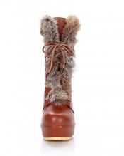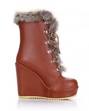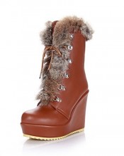 WeenFashion Womens Round Closed Toe High Heels Short Plush Solid Boots with Wedge Bandage Fur Ornament, Brown, 5 UK
