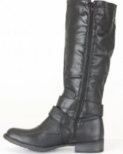 Womens Black Riding Winter Biker Style Ladies Low Heel Calf High Leg Flat Knee High Boots Size – shoeFashionista Branded