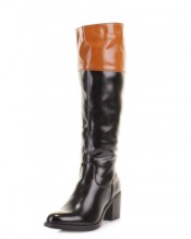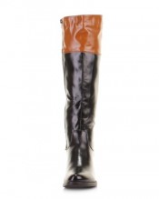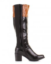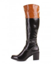 Key Features:Heeled knee boots with chunky heel a black slick upper with tan cuff. Great knee boots with a bit of high height