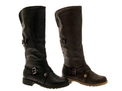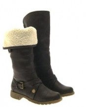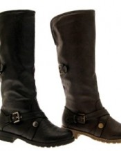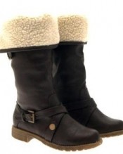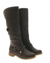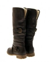 WOMENS FUR LINED KNEE HIGH CUFF RIDING BIKER BOOTS FLAT BUCKLE LADIES SHOES BROWN SIZE 4