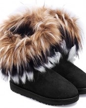 Womens Girls Ankle High Flat Faux Fur Lined Boots Warm Shoes