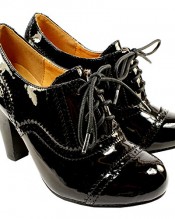 WOMENS HIGH HEEL PATENT BLACK BROGUE LACE UP ANKLE SHOE BOOTS LADIES NEW 3-8