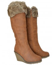 Great Looking Ladies Wedge Heel Knee High Winter Fur Boots