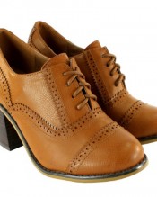 Womens Ladies Chunky Mid Heel Brogue Style Lace Up Ankle High Boots – Tan – 8