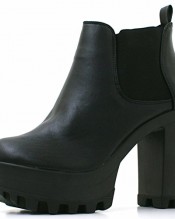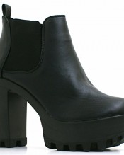 Womens Ladies Faux Leather Chunky High Heel Cleated Grip Sole Platform Chelsea Ankle Shoes Boots – C10 (3, BLACK FAUX LEATHER)