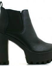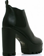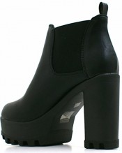 Womens Ladies Faux Leather Chunky High Heel Cleated Grip Sole Platform Chelsea Ankle Shoes Boots
