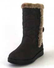 Ladies Mid Calf High Winter Button Boot Brand Tilly London Colours Black, Tan, Beige Heel Height Flat Fastening Pull On Style Material Faux Sheepskin Lining Faux Fur