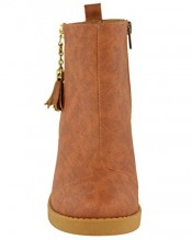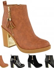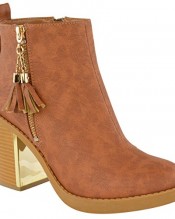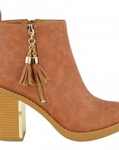 WOMENS LADIES MID HIGH HEEL BLOCK PLATFORM LOW ANKLE CHELSEA BOOTS SHOES SIZE (UK 5, Tan Faux Leather)