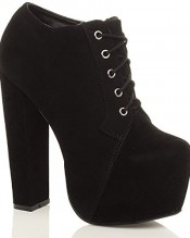 WOMENS LADIES PLATFORM BLOCK HIGH HEEL LACE UP ANKLE SHOE BOOTS BOOTIES SIZE 6 39