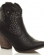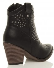 WOMENS LADIES STUDDED EMBELLISHED STITCHED COWBOY ANKLE MID HEEL BOOTS SIZE 6 39