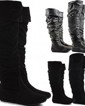 WOMENS LADIES THIGH HIGH OVER THE KNEE BIKER RIDING STYLE LOW FLAT HEEL KNEE BOOTS SIZE 3-8