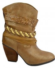 Womens Long Boots Mid Calf High High With Block Heel And Round Toe (4, Tan)