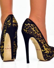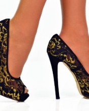 Exquisite silhouette is paramount for the creation of truly beautiful shoes. If the shoes lack that, no amount of lovely colours and glitter will help. But these shoes have it all. Molded from strong lace, which has been weaved into intricate golden flowers, glamour has most definitely been achieved. Don’t hesistate to add these supreme date heels to your wardrobe, they won’t let you down.