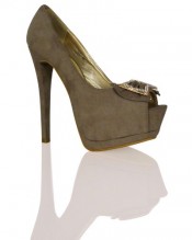 ByPublicDemand L1I Womens Bow High Heel Shoes Khaki Brown Faux Suede Size 6 UK