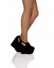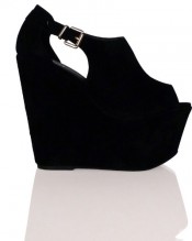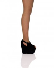 ByPublicDemand L1U Womens High Heel Cut Out Wedges Black Faux Suede Size 7 UK