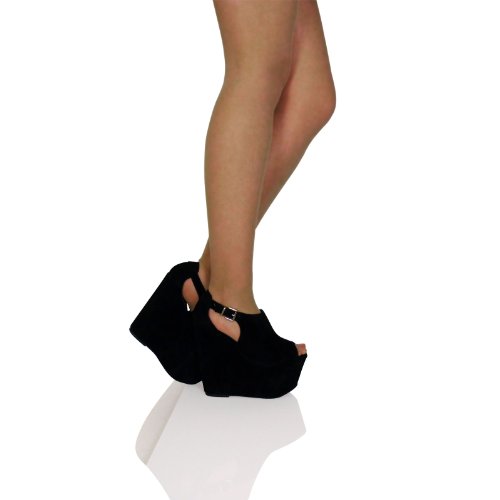 ByPublicDemand L1U Womens High Heel Cut Out Wedges Black Faux Suede Size 7 UK