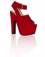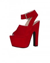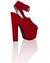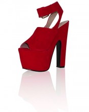 ByPublicDemand L4E Womens High Block Heels Shoes Red Faux Suede Size 6 UK