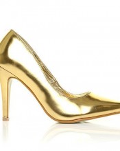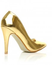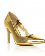 DARCY Gold Metallic PU Leather Stilleto High Heel Pointed Court Shoes Size UK 8 EU 41