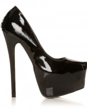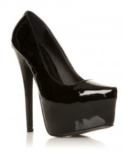 DONNA Black Patent PU Leather Stilleto Very High Heel Platform Court Shoes Size UK 7 EU 40