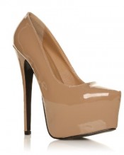 DONNA Dark Nude Patent PU Leather Stilleto Very High Heel Platform Court Shoes Size UK 6 EU 39
