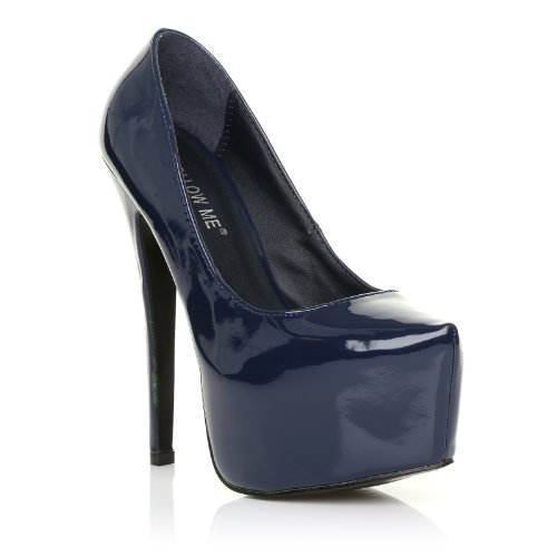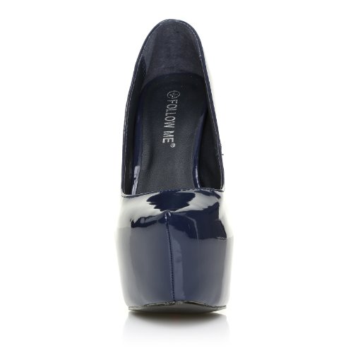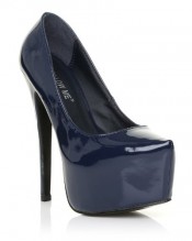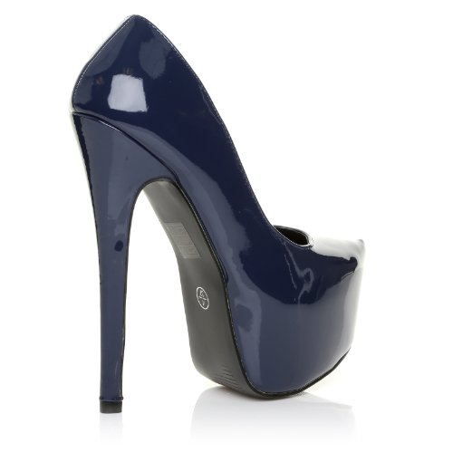 DONNA Navy Patent PU Leather Stilleto Very High Heel Platform Court Shoes Size UK 4 EU 37